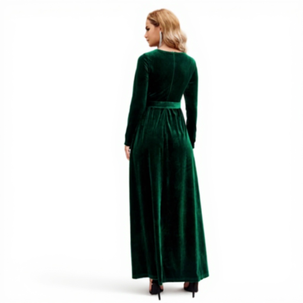 Questo abito è pensato per donne che cercano eleganza e comfort in occasioni speciali. La linea ad A si adatta a diverse silhouette, mentre il velluto di qualità offre un tocco di lusso accessibile, rendendolo perfetto per chi desidera un abito versatile per eventi formali e informali.