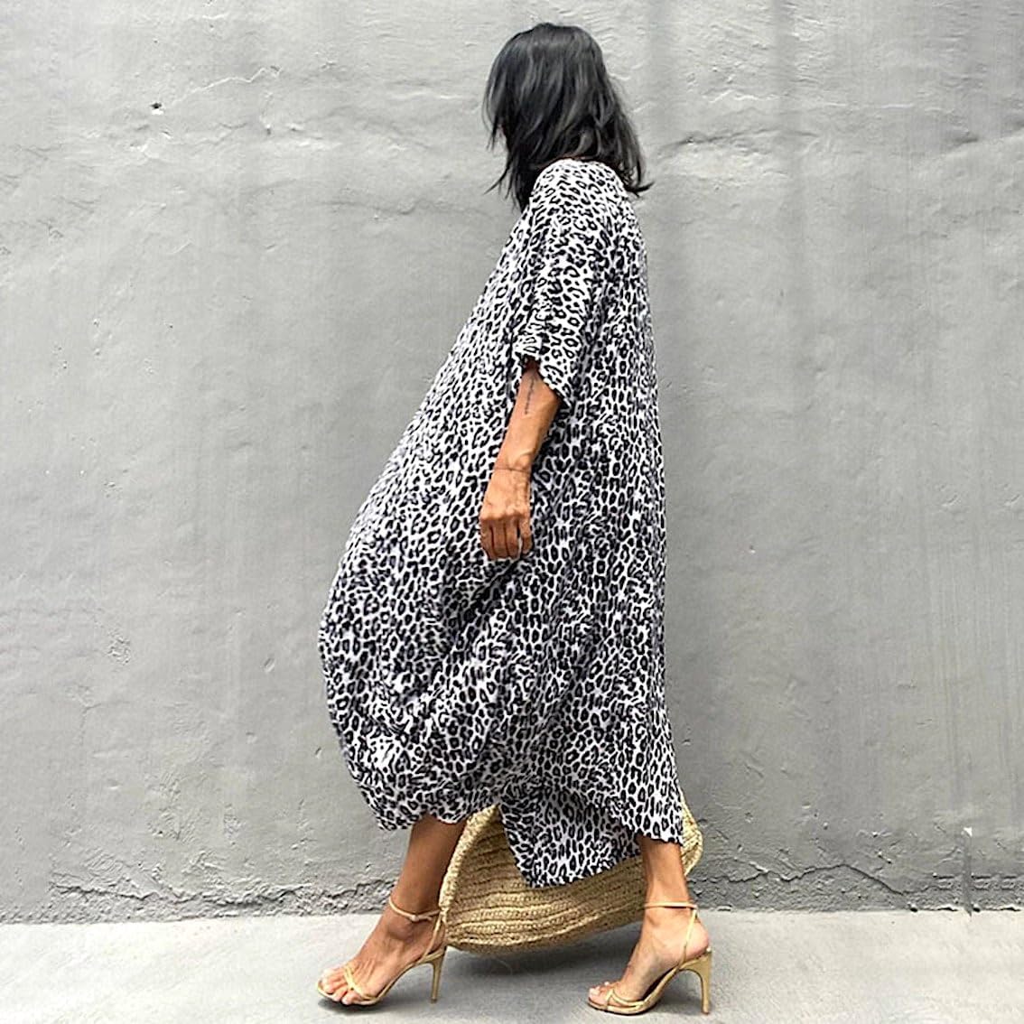 Questo copricostume caftano unisce stile e funzionalità, con un design boho chic che esalta l’eleganza naturale. Realizzato in tessuto leggero e traspirante, è perfetto per le giornate al mare o in piscina, offrendo comfort e praticità.