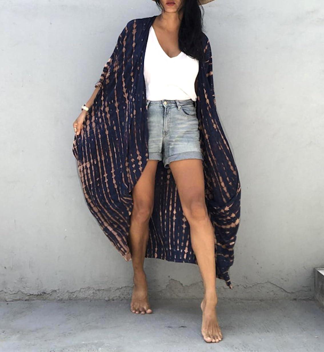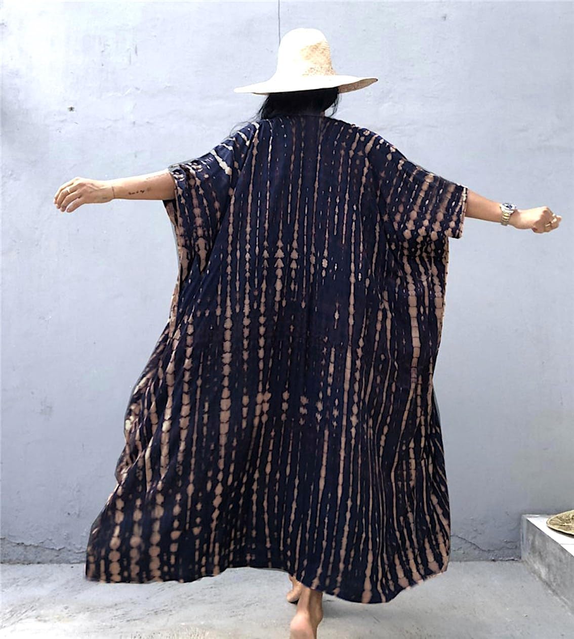 Questo copricostume caftano unisce l’eleganza dello stile boho chic alla praticità di un capo versatile per il mare. Il design fluido e il taglio lungo creano una silhouette slanciata, mentre la taglia unica si adatta comodamente a diverse forme del corpo. Perfetto come copricostume elegante o come vestito estivo leggero per diverse occasioni.