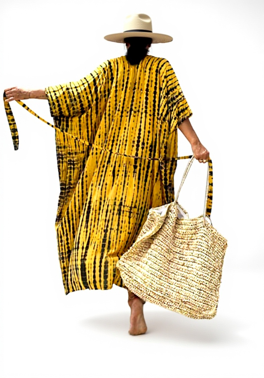 Perfetto per giornate al mare, in piscina o come abbigliamento casual estivo. Il caftano è versatile per passeggiate sulla spiaggia, cene all’aperto o momenti di relax, offrendo copertura e eleganza in ambienti informali e soleggiati.
