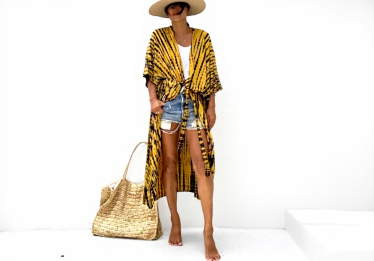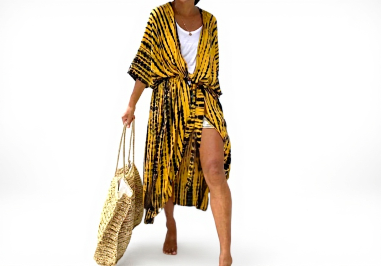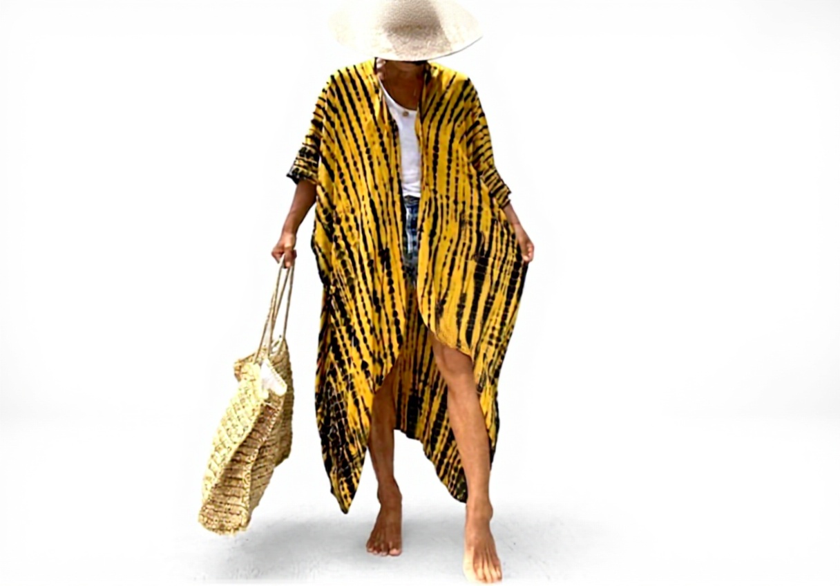 Il copricostume caftano donna unisce design boho chic e funzionalità per il mare. Realizzato con materiali leggeri e traspiranti, questo vestito lungo maxi offre un comfort ottimale e un look elegante, ideale per proteggersi dal sole mentre si indossa il costume.