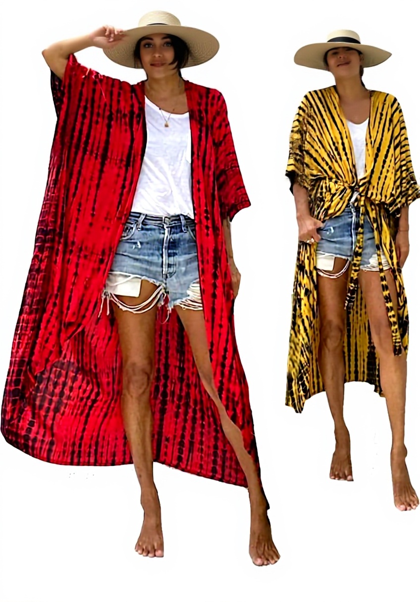 Il copricostume è disponibile in giallo e rosso, colori vivaci che si abbinano bene con l’estate e offrono opzioni per diversi gusti e outfit.