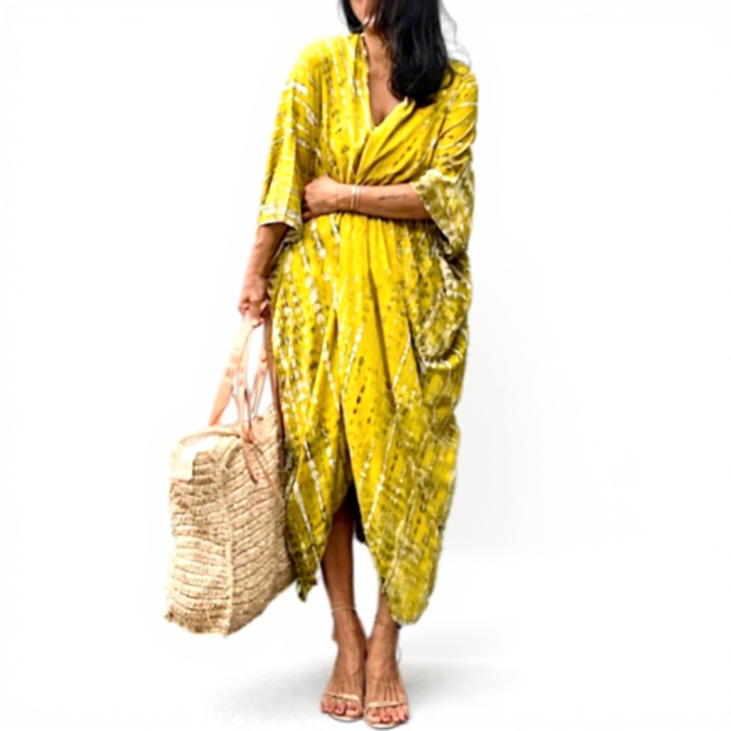Questo caftano è pensato per donne che cercano un capo pratico ma elegante per l’estate. Si rivolge a chi apprezza lo stile boho chic e desidera un abbigliamento comodo che unisca funzionalità e moda. Perfetto per donne di tutte le età che vogliono sentirsi alla moda anche in contesti informali.