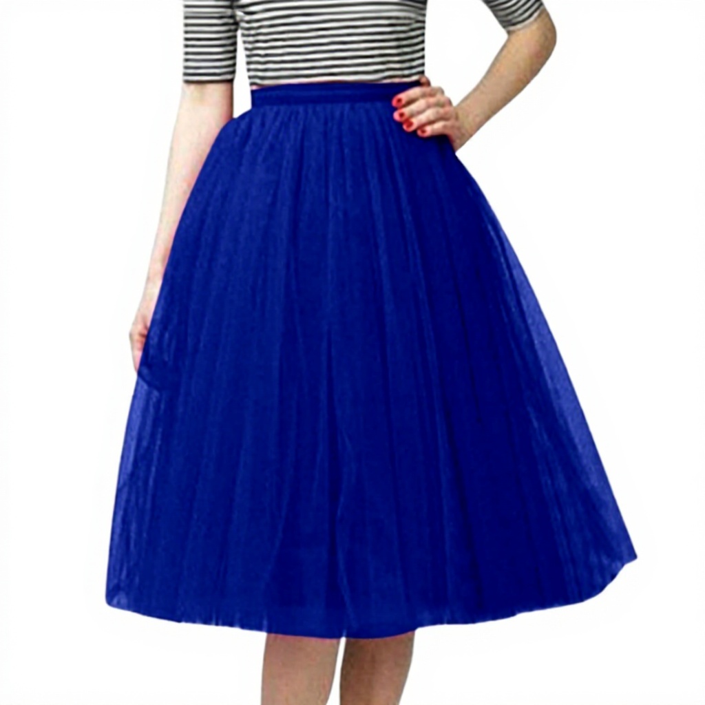 La gonna è disponibile in taglia unica, adatta alla maggior parte delle figure, e in una gamma di colori vivaci come blu, marino, arancia, giallo, blu scuro, viola e rosa. Realizzata in tulle di qualità, è leggera e resistente, con un design che enfatizza la pulizia delle linee e la facilità di manutenzione, incluso essere facile da pulire in caso di sporco.