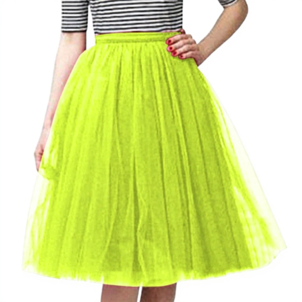 La gonna è disponibile in diverse tonalità tra cui marino, rosa, arancia, blu scuro, blu, giallo e viola, tutti in taglia unica.