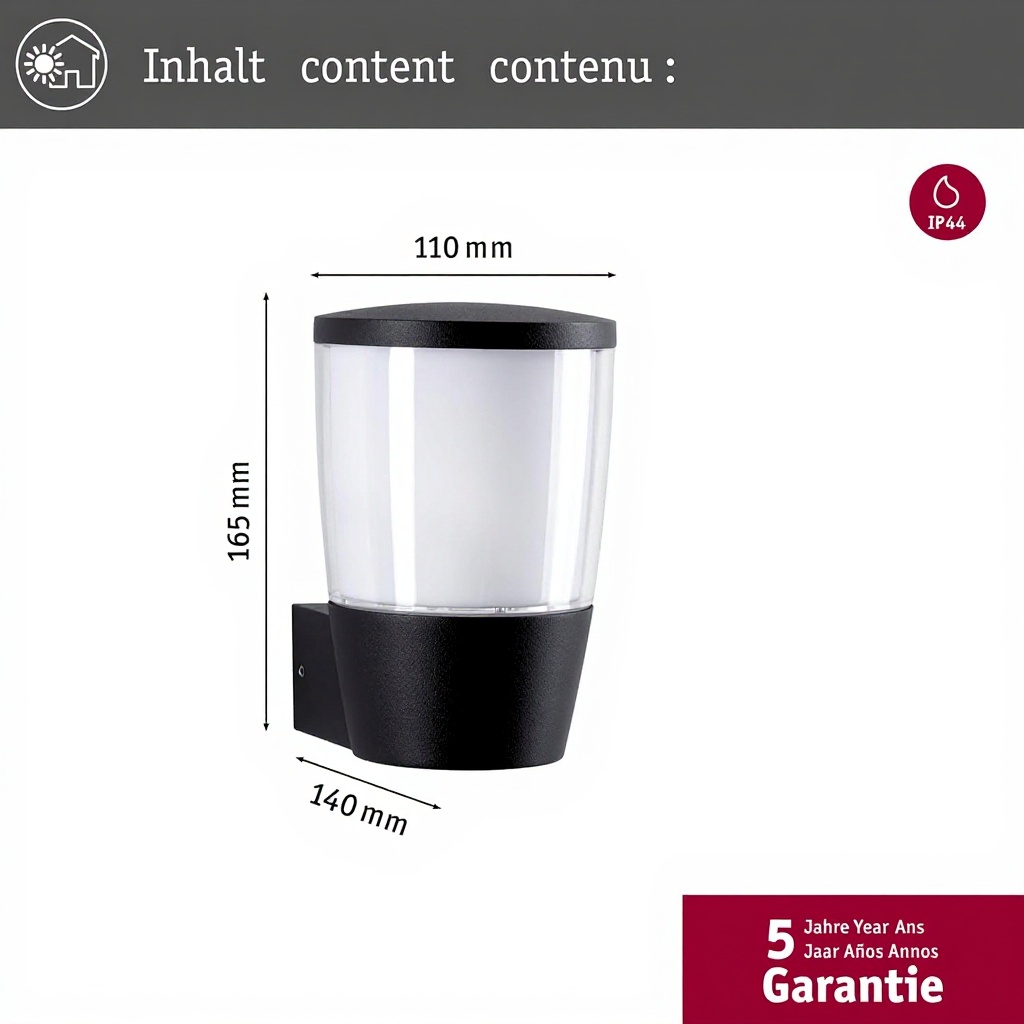 Lampada da parete esterni Paulmann Bako antracite resistente