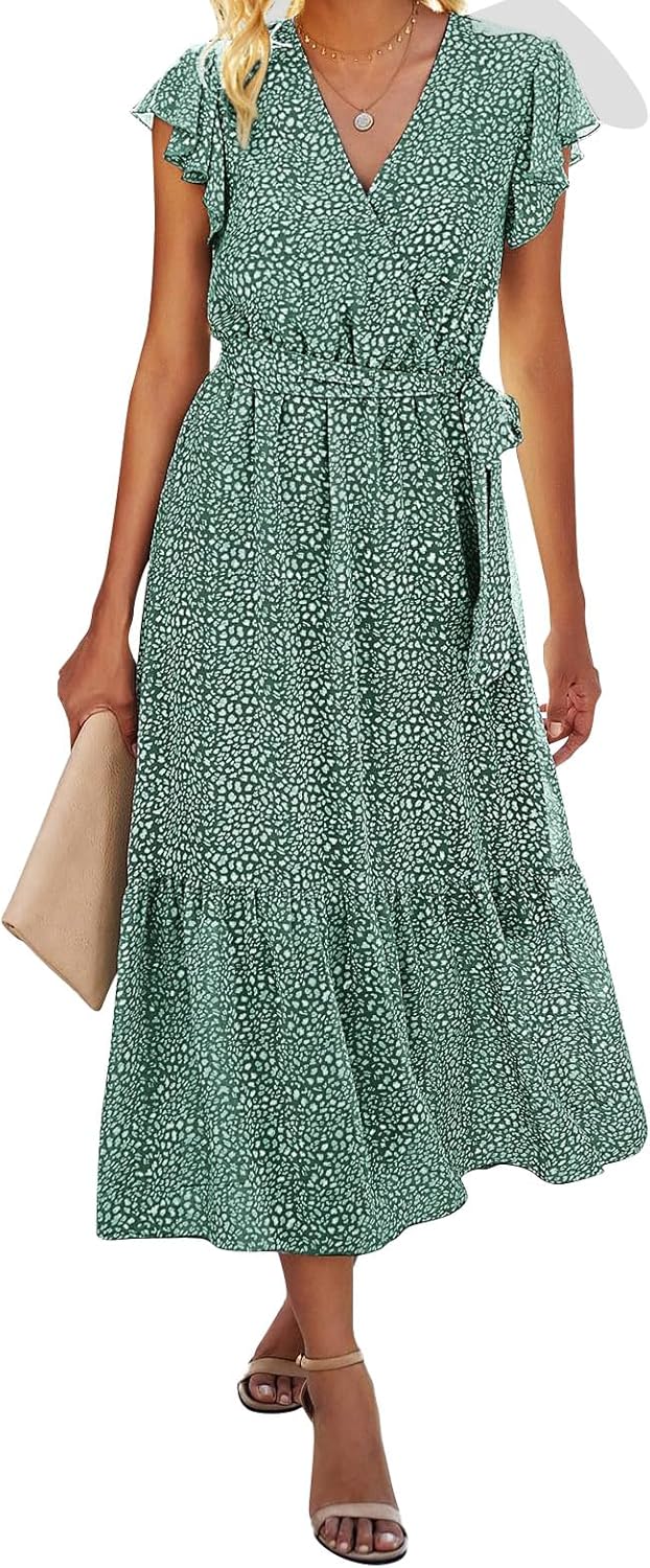 Il vestito lungo estivo Onsoyours è realizzato in tessuto leggero e morbido, ideale per la stagione calda. Presenta un design bohò chic con scollo a V, maniche corte con volant e una cintura in vita che definisce la silhouette. Il motivo floreale aggiunge un tocco romantico e fresco, rendendolo versatile per diverse occasioni.